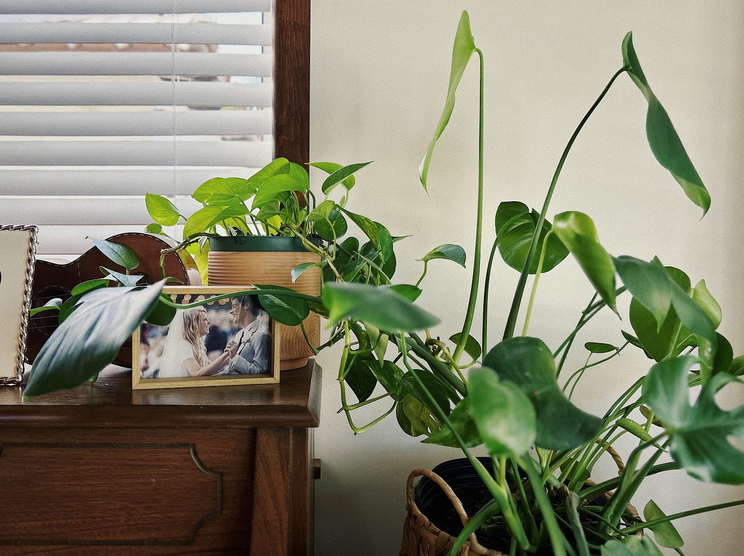 My plants have been ~thriving~ in the heatwave; our fiddle leaf fig tree sprouted three new leaves over the weekend! And apparently, the pothos and monstera have fallen in love: