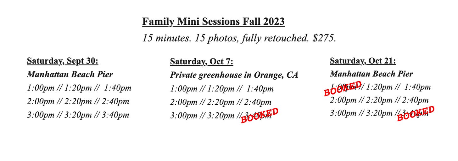 Southern CA readers, I’d love to photograph your families! Here’s all the info.